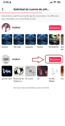 Aparecerán varios perfiles posibles con lanzamientos asociados. Busca el tuyo y haz clic en "Reclamar" cuando lo encuentres.