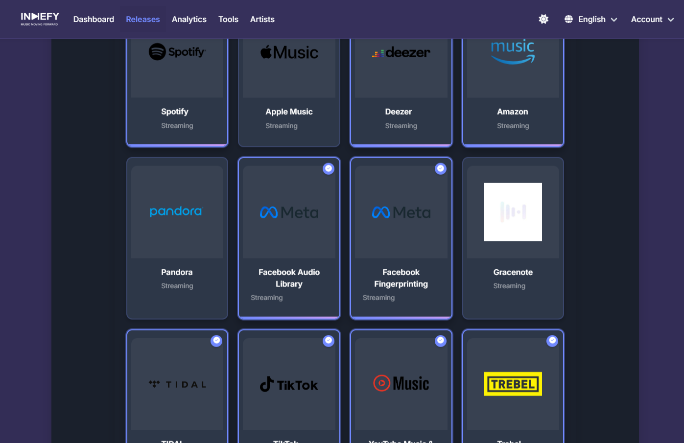 With this feature, you will have full control over what goes on stores. You can choose the stores you want to distribute your music to, including the exclusive social stores like Instagram, FB, and TikTok.