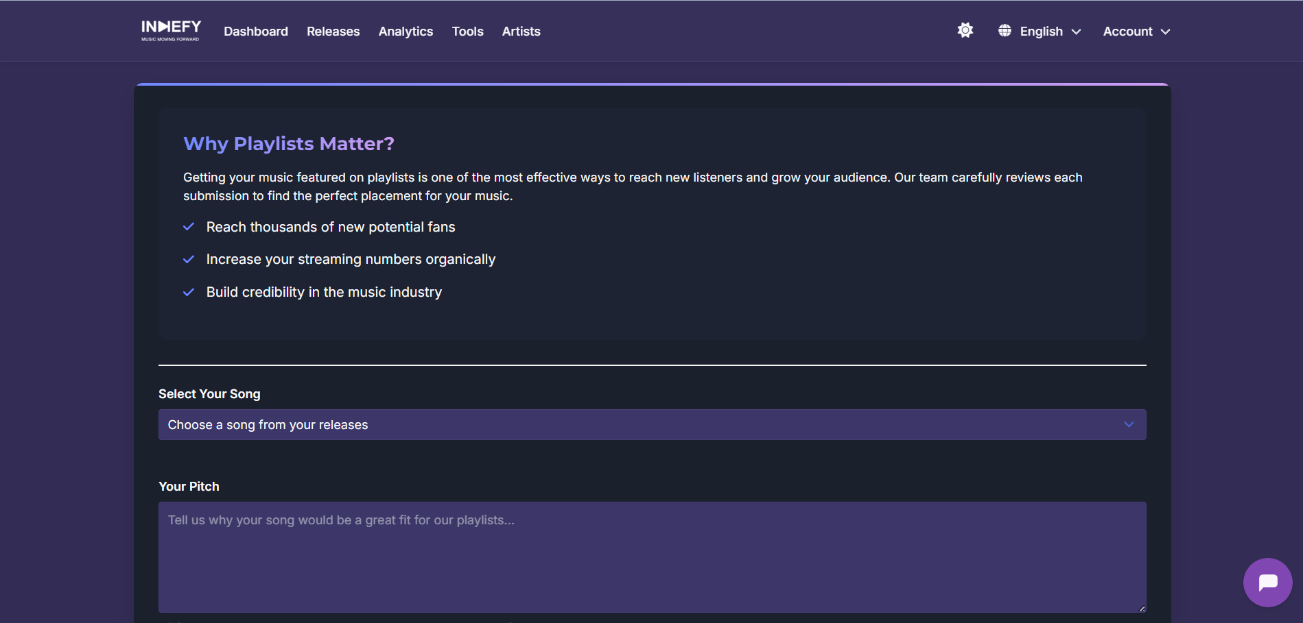 Note: Our team will review your song and may add it to the Playlist you requested—or, if it fits better, to another Playlist based on your song’s genre, style, or mood.