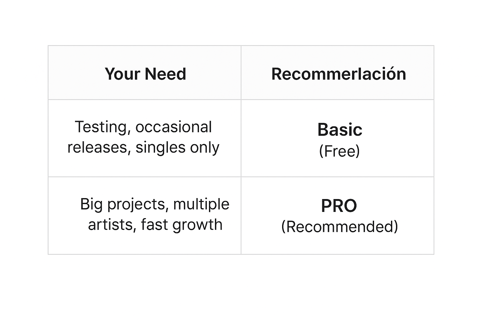 While the Basic plan is a solid starting point, the PRO plan is the best investment to take your career to the next level. With more releases, album support, and pro-level tools, you’ll have everything you need to stand out in the industry.