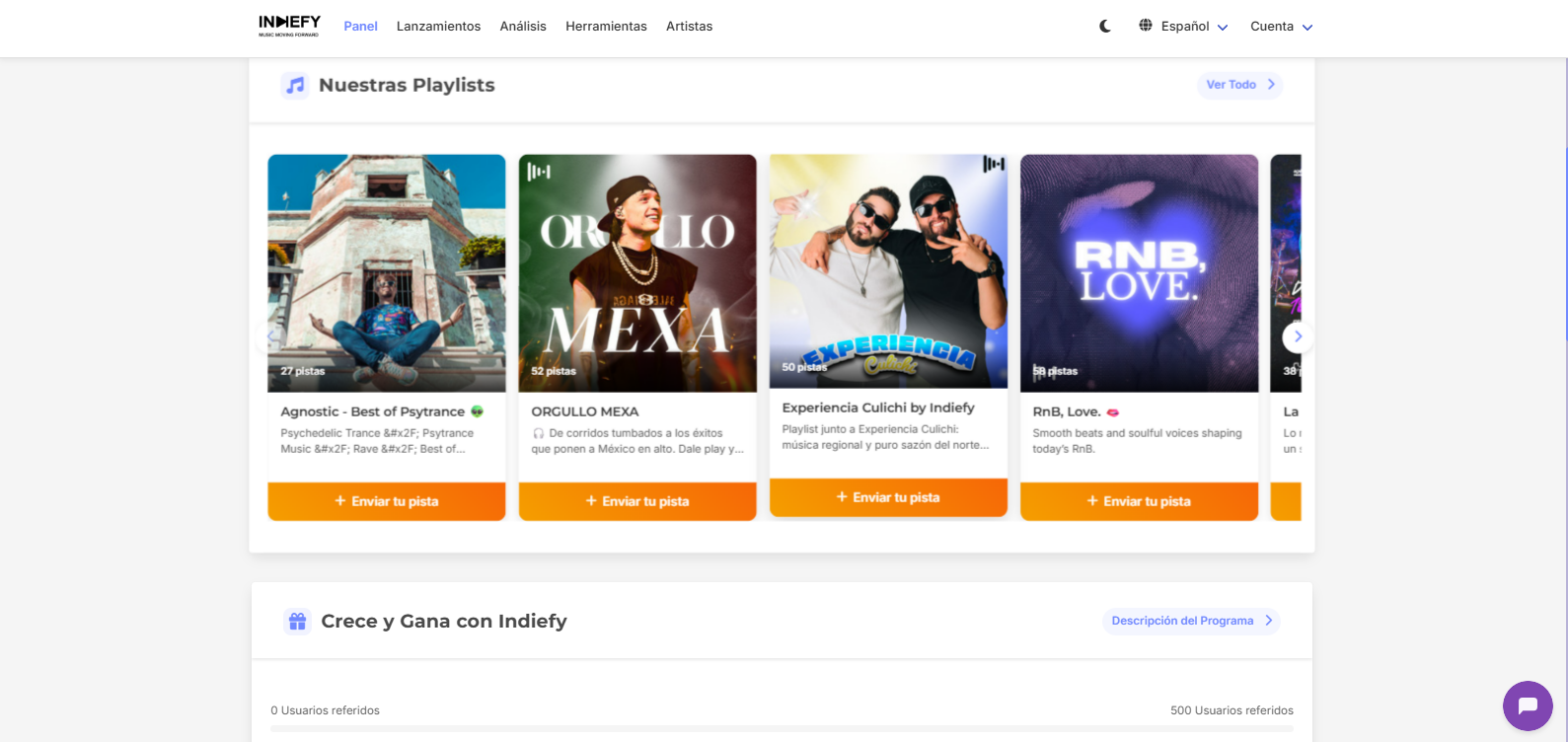 1. Ingresa a indiefy.net e inicia sesión.