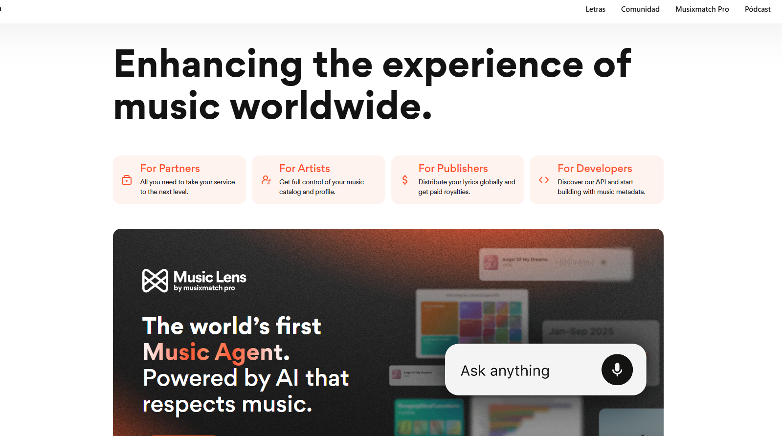 If you are an artist, verify your artist profile on Musixmatch. Go to the Musixmatch for Artists section and follow the steps to claim your profile. This will require verified information, such as links to your artist profiles on platforms like Spotify or Apple Music.